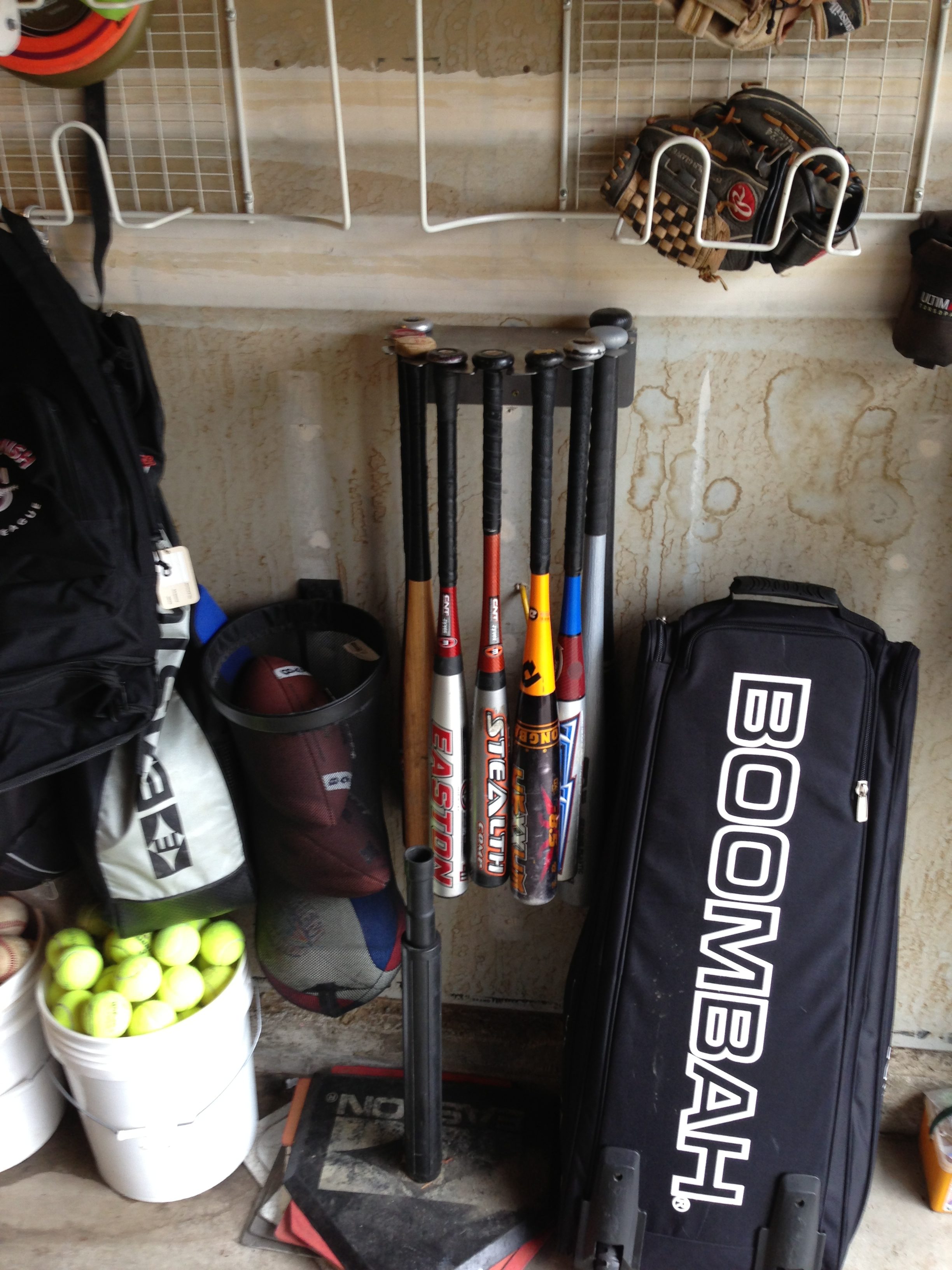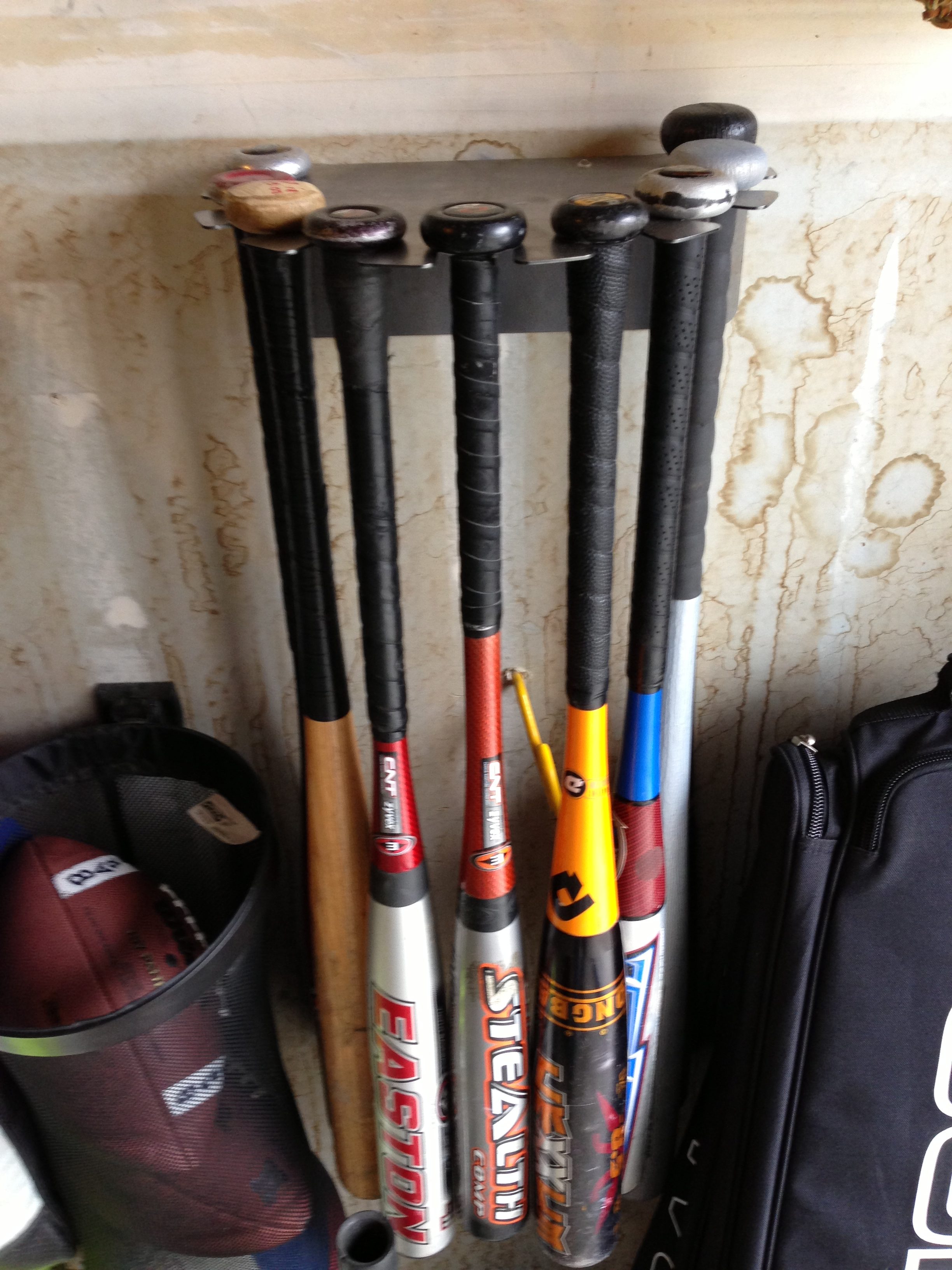Baseball Bat Rack, Holds 9-bats. Made In USA. Made of Steel. Painted $35. Save the environment, unpainted (mill gray) $30. Free continental US, ground shipping on this item.