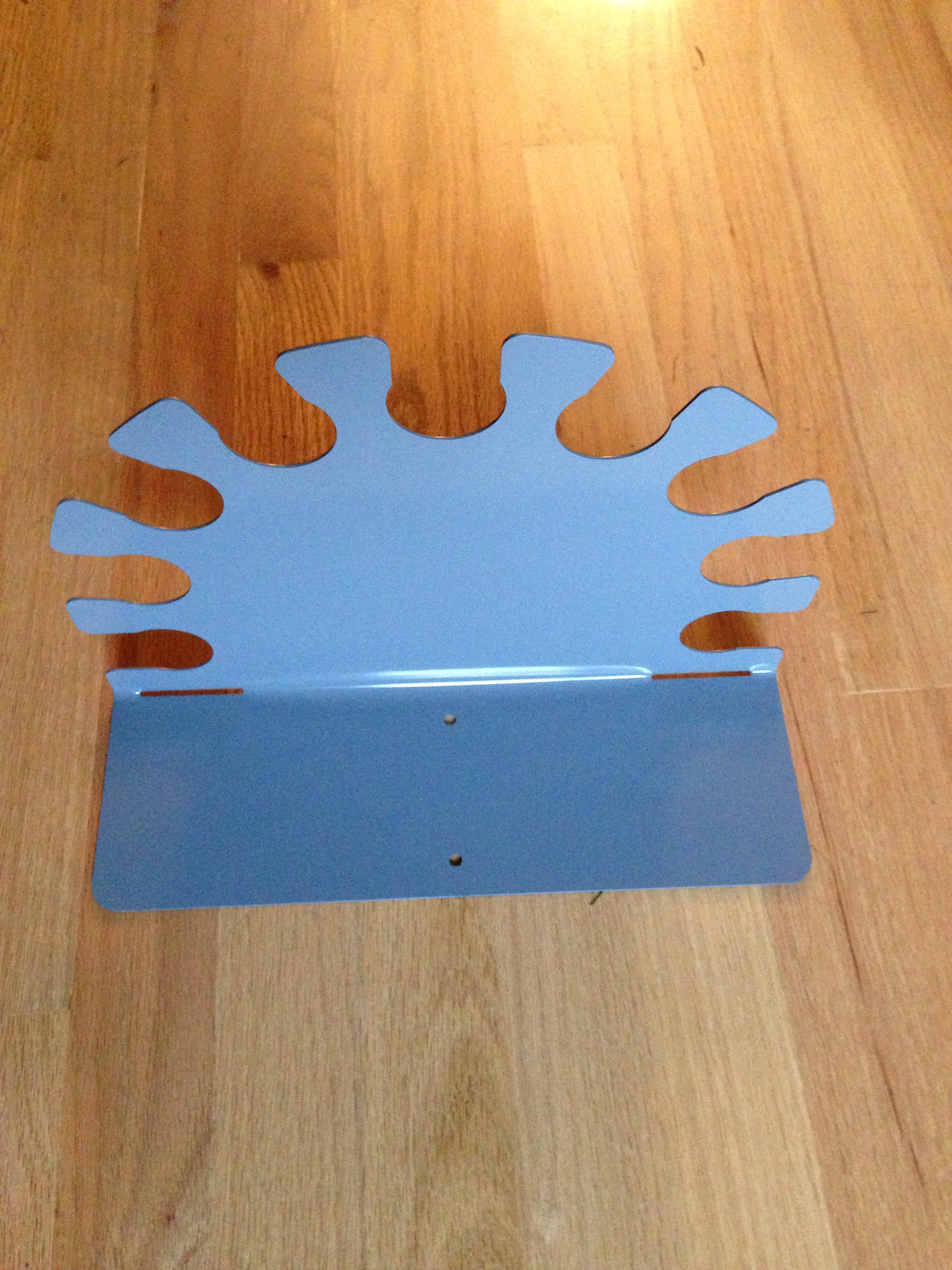 Baseball Bat Rack, Holds 9-bats. Made In USA. Made of formed Steel. Painted $35. Save the environment, unpainted (mill gray) $30. Free continental US, ground shipping on this item.